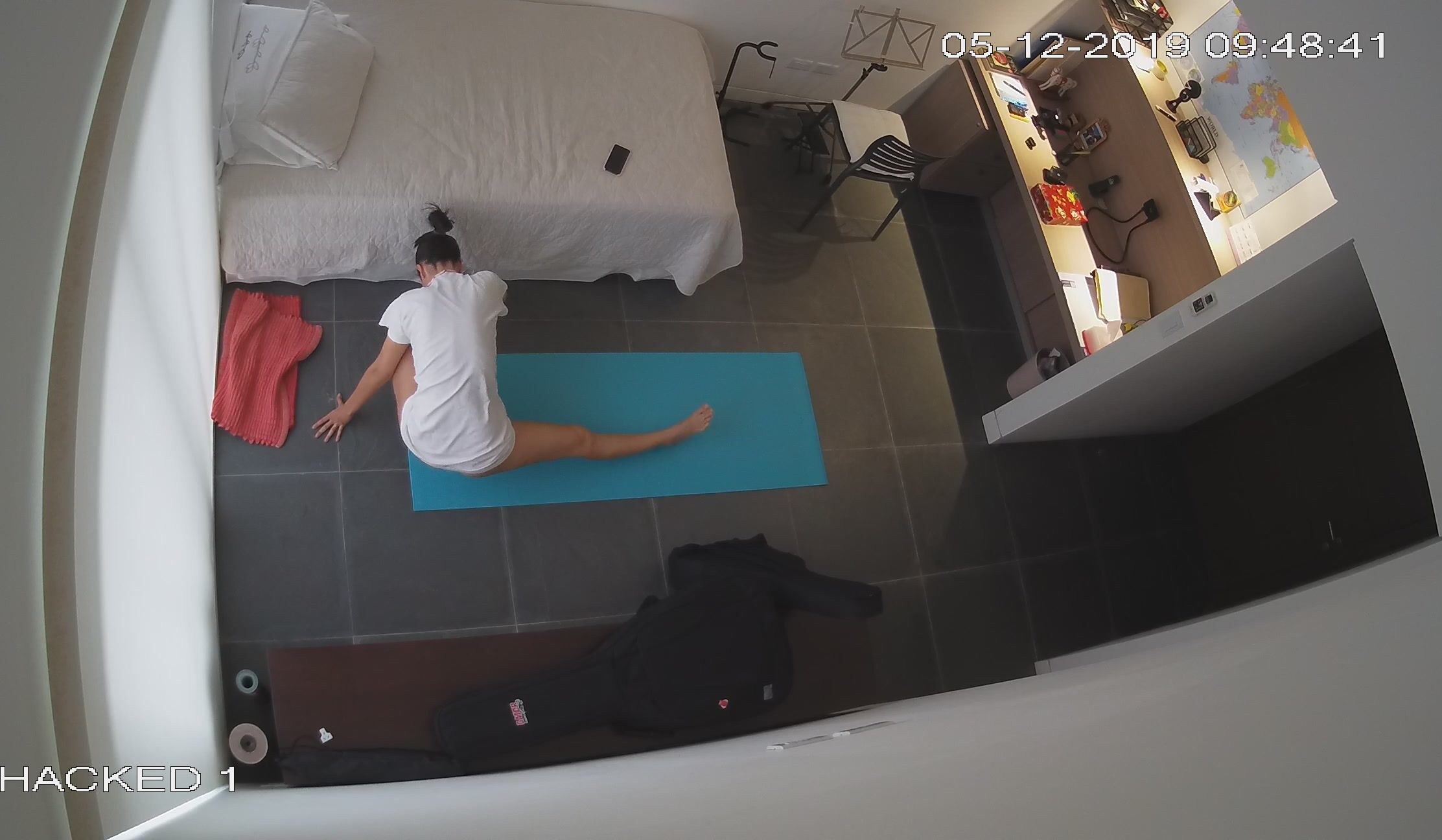 房东暗藏摄像头偷拍在家不穿内裤的女租客练习瑜伽