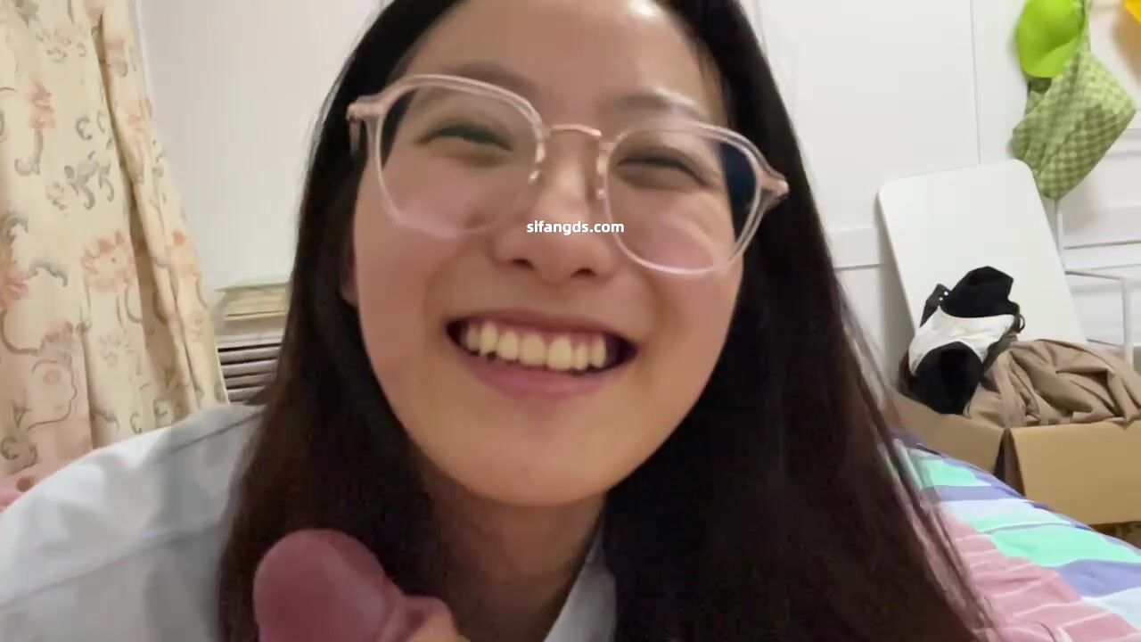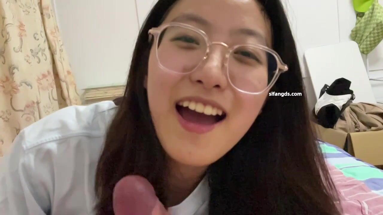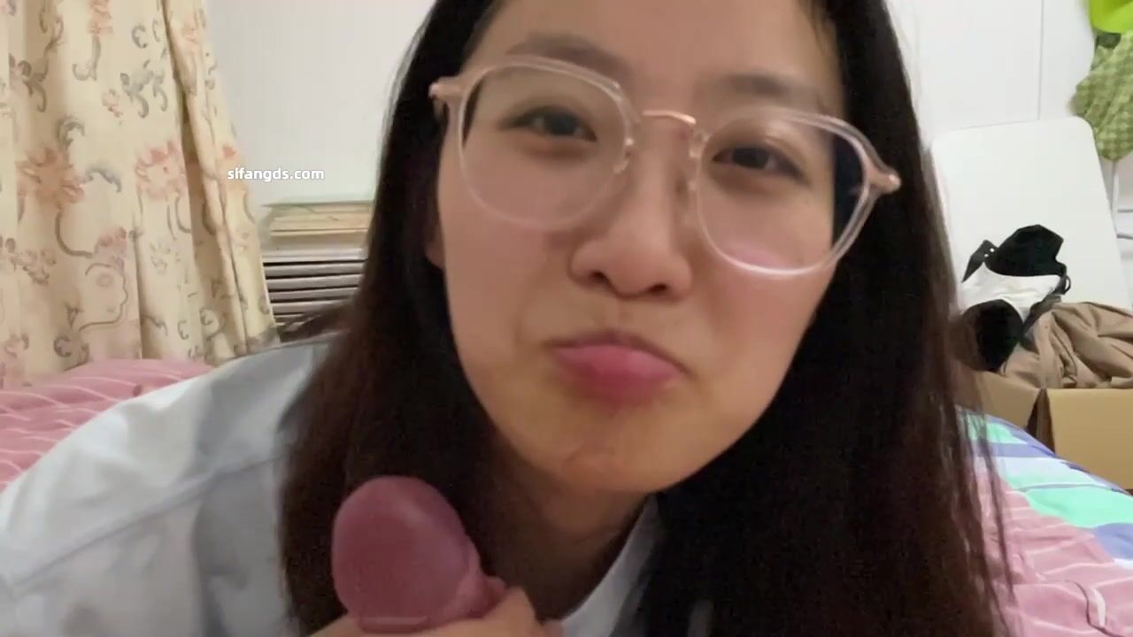 碎花裙清純反差眼鏡妹 口交顏射 -1